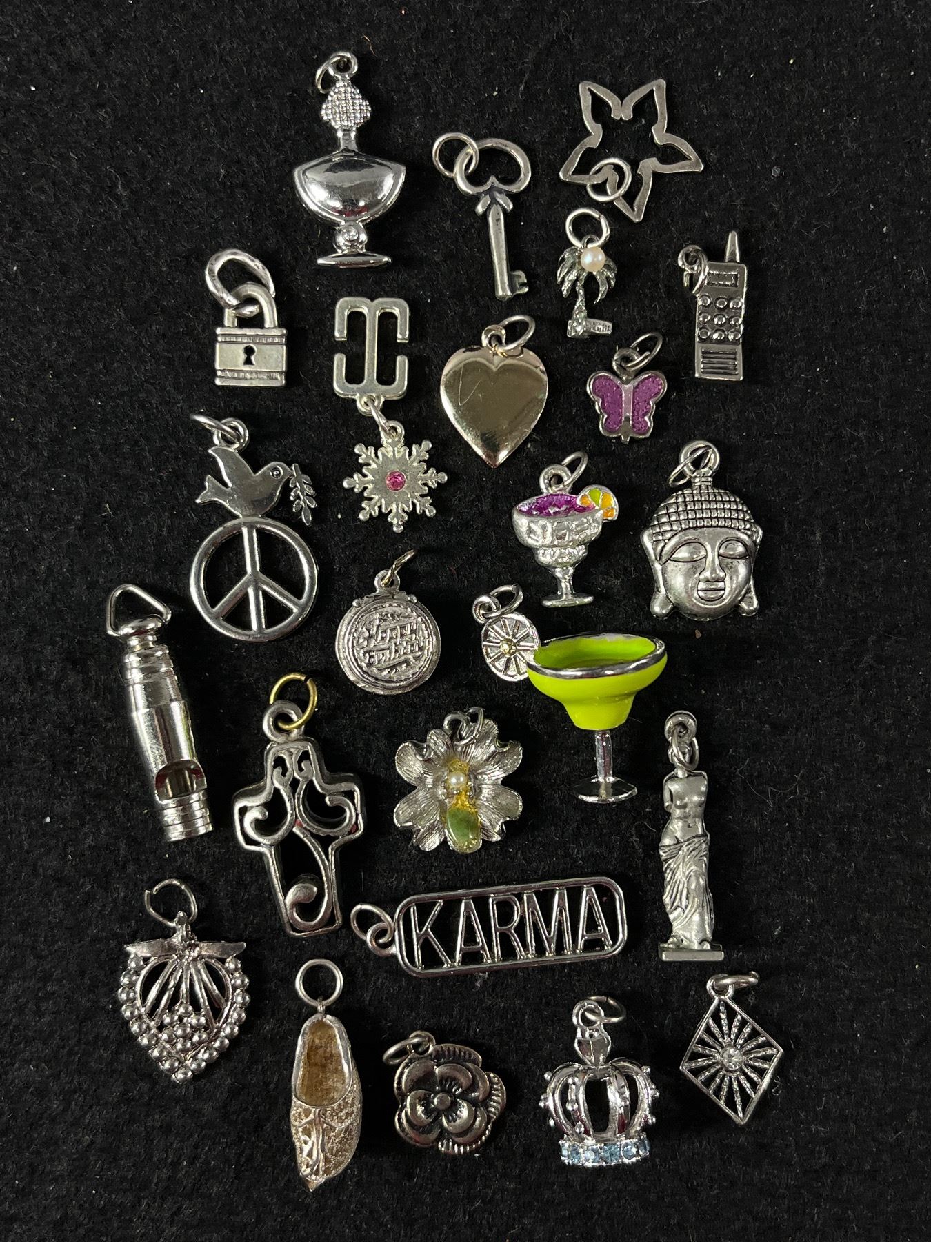 Huge Collection of Silver Charms Some Vintage Some Sterling Silver