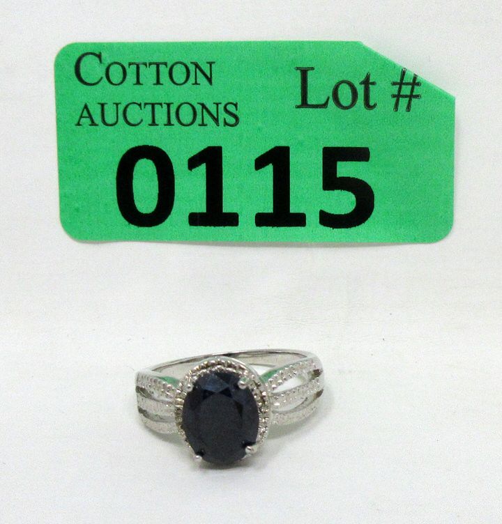 8 x 10 mm Oval cut sapphire with 2 diamonds. Retail value $325.