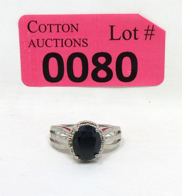 8 x 10 mm Oval cut sapphire with 2 diamonds. Retail value $325.