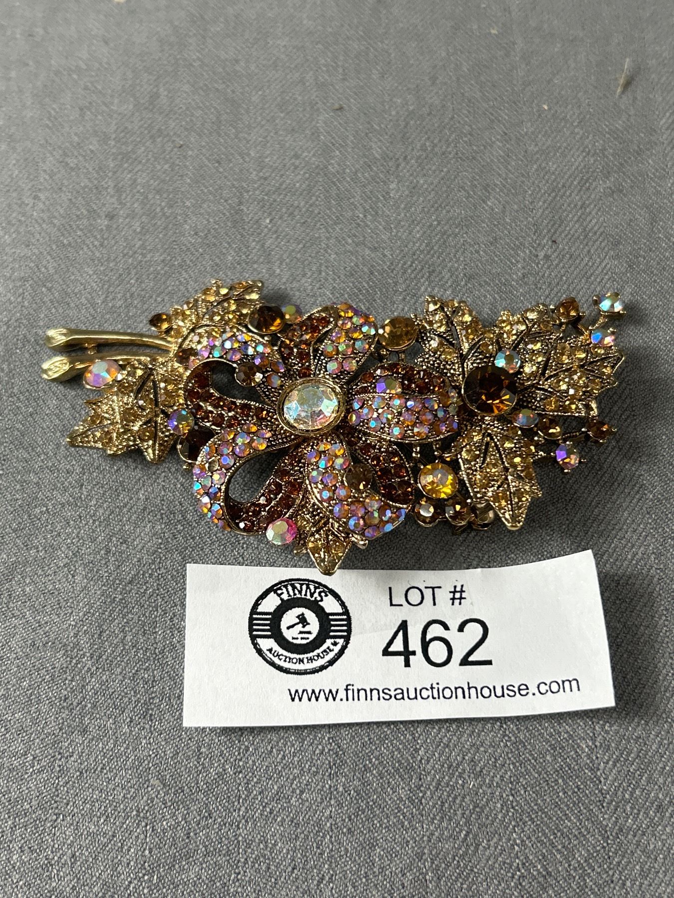 Huge Vintage Borealis Rhinestone Brooch 4" L x 2" W Original Patina