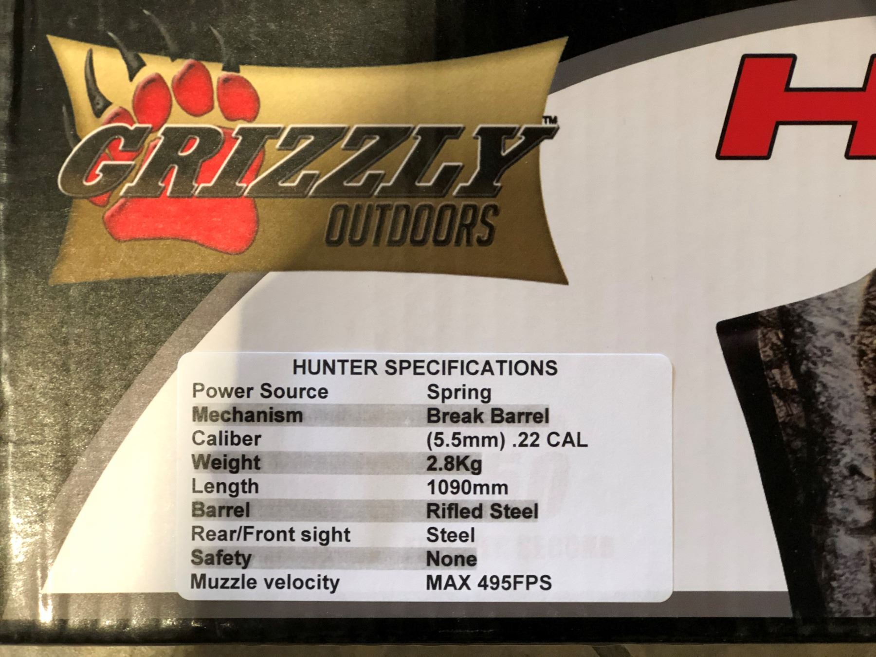 Hunter Grizzly Air Rifle - .22 Caliber, 495ft per second (one pump, adjustable sight, lightweight design, TruGlo fibre optic sights) New in Box