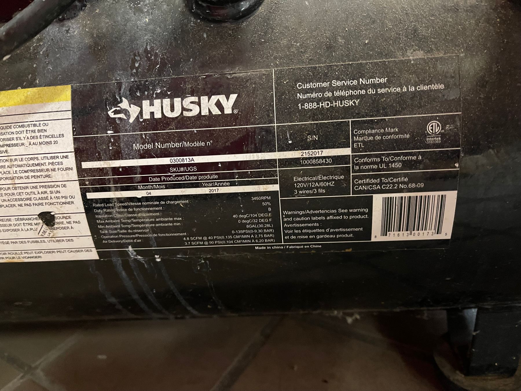 Husky 8 gallon portable oil free electric air compressor model 0300813A