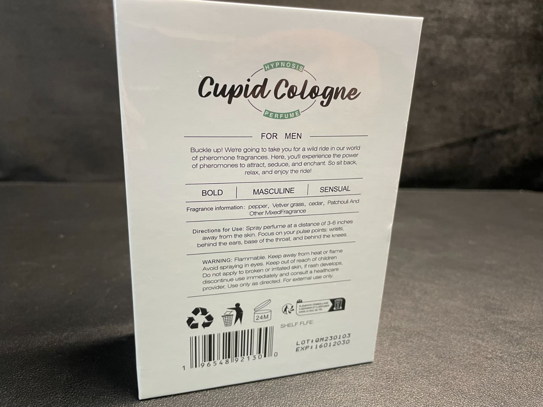 - Bold, masculine, and sensual fragrance - smells nice!!