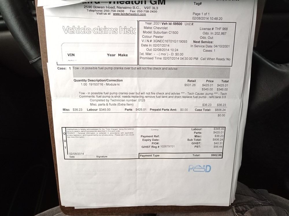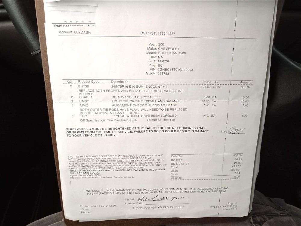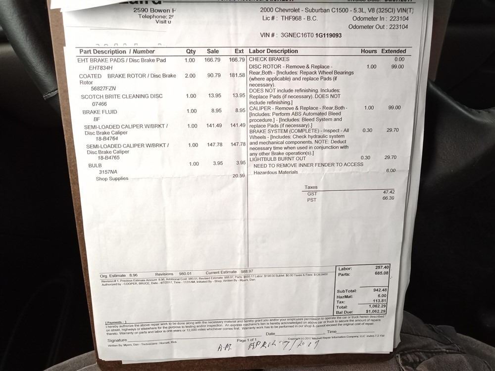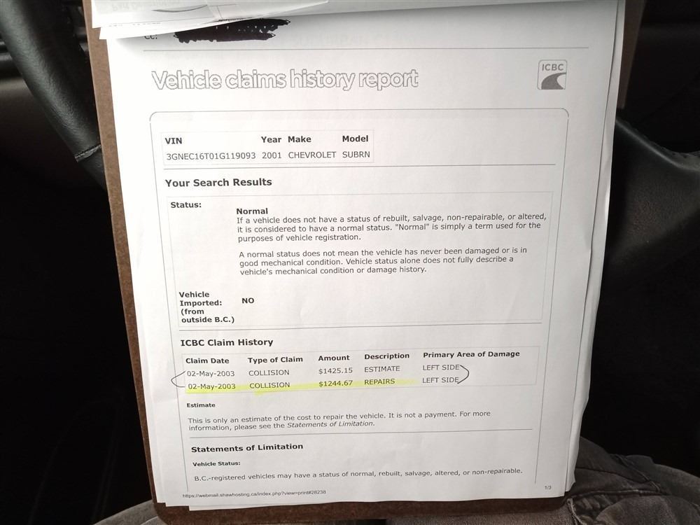 Automatic transmission and 5.3 Litre Engine, 8 cylinder , Rear Wheel Drive, 316875 KilometersBrown, 6 PassengerNo Declarations - BC Vehicle, No Accidents over $2000, Power Steering, Power Brakes, , Intermittent Wipers, AM/FM Stereo , Rear Defroster, Bucket Seats, Anti Lock Brakes, Front Disc Brakes-Air Conditioning, Power Windows, Power Locks, Keyless Entry, Tilt Steering, Cruise Control, Alloy Wheels, Anti Theft, CD Player, Power Seats, Information Center, Traction Control, Rear Heat and Air, Fog Lights, Roof Rack, Tow Package, Trailer Brake Controller, Running Boards, Spare Key, Chip / Crack in windshieldAuction Notes : Power Mirrors, Comes With Reciepts For Past Repairs + Maintenance, Consignor Declares New Front Brakes & Wheel Bareing