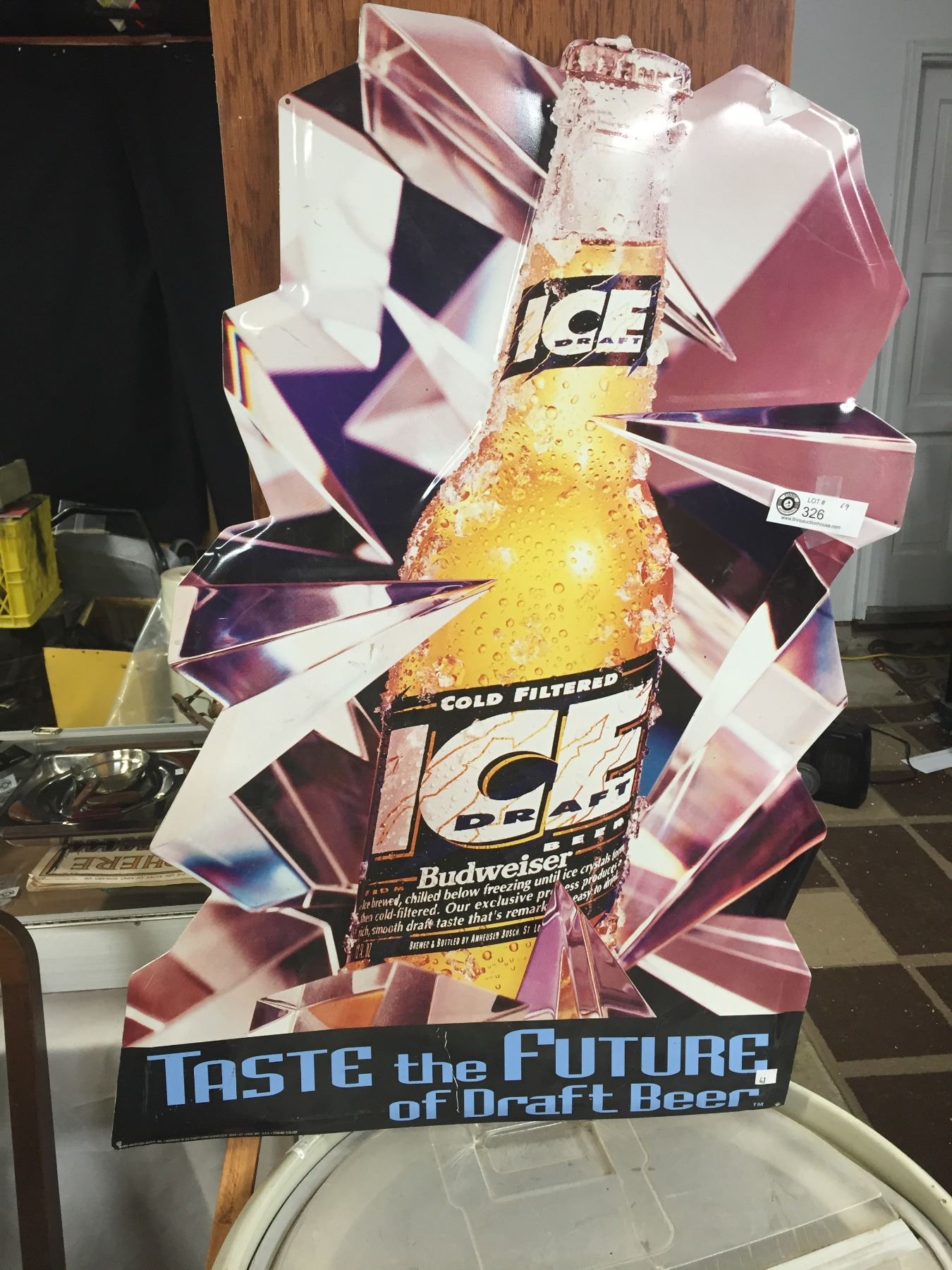 ICE Draft Budweiser Tin Sign. 23" w x 32" H