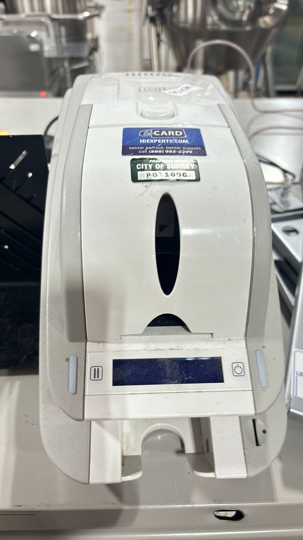 IDP SMART-50S CARD PRINTER, GREY METAL MONITOR MOUNT, 7 SLATWALL MOUNTING BRACKETS, POWER CORDS &