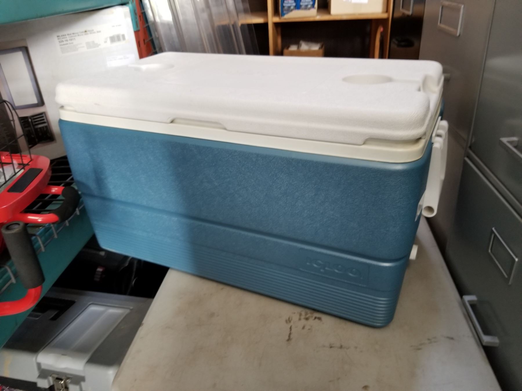 IGLOO COOLER, WOVEN BLANKET AND FRENCH FRY HOLDERS AND SERVING CONES