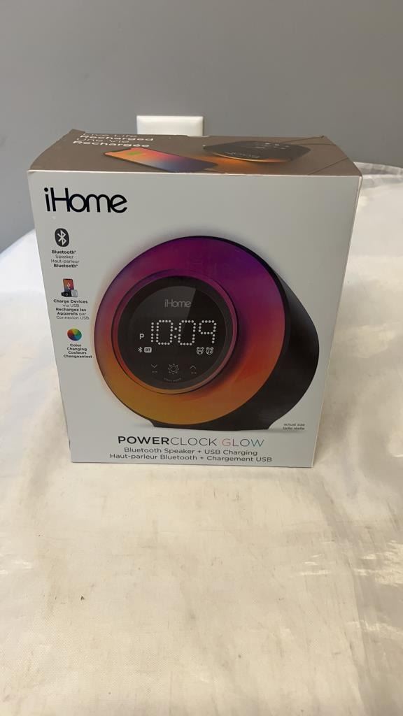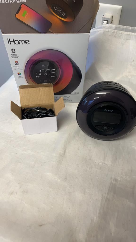 IHOME POWER CLOCK GLOW BLUETOOTH SPEAKER AND USB CHARGING