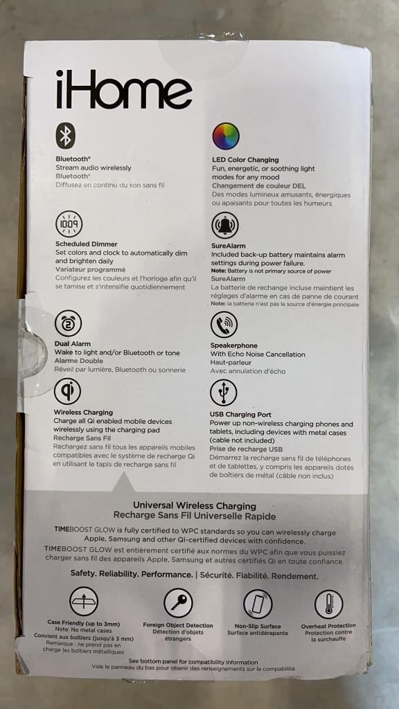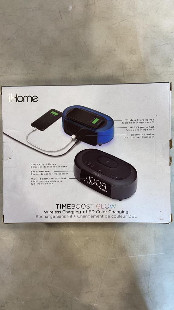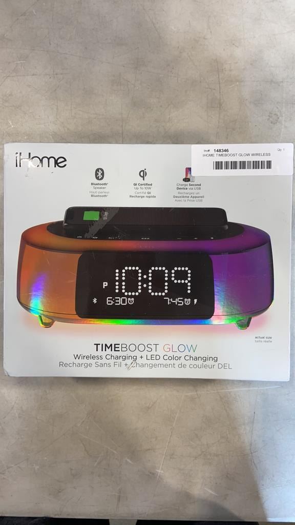 IHOME TIMEBOOST GLOW WIRELESS CHARGING AND LED COLOR CHANGING ALARM CLOCK