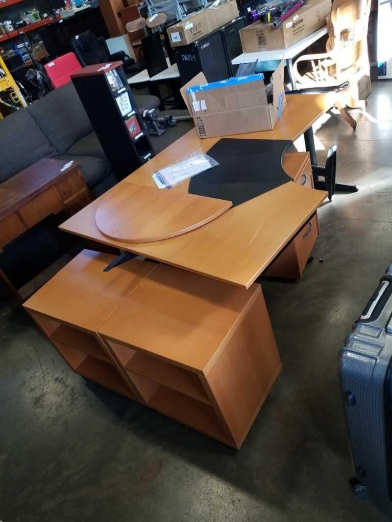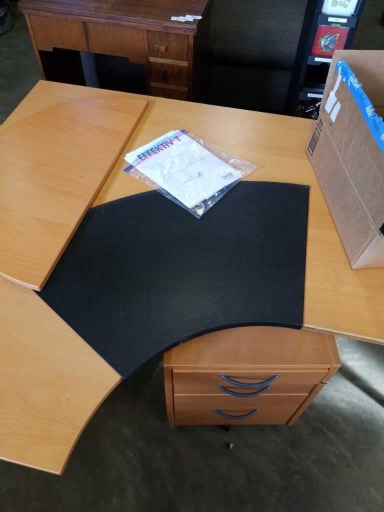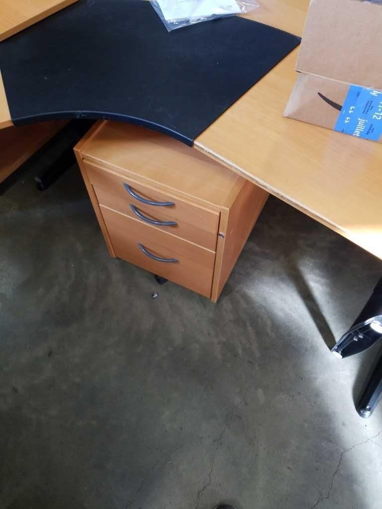 IKEA CORNER DESK WITH ROLL UNDER SHELVES
