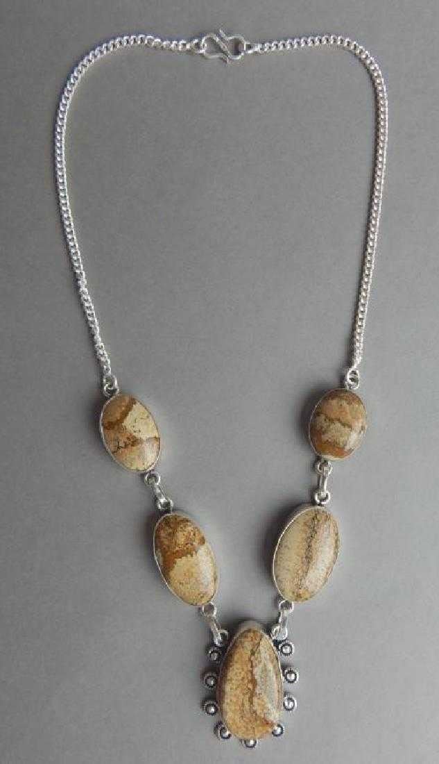 IMPRESSIVE 75.75 CT MOSAIC JASPER NECKLACE MOUNTED IN .925 STERLING SILVER 17 1/2 " LONG 175 CTTW