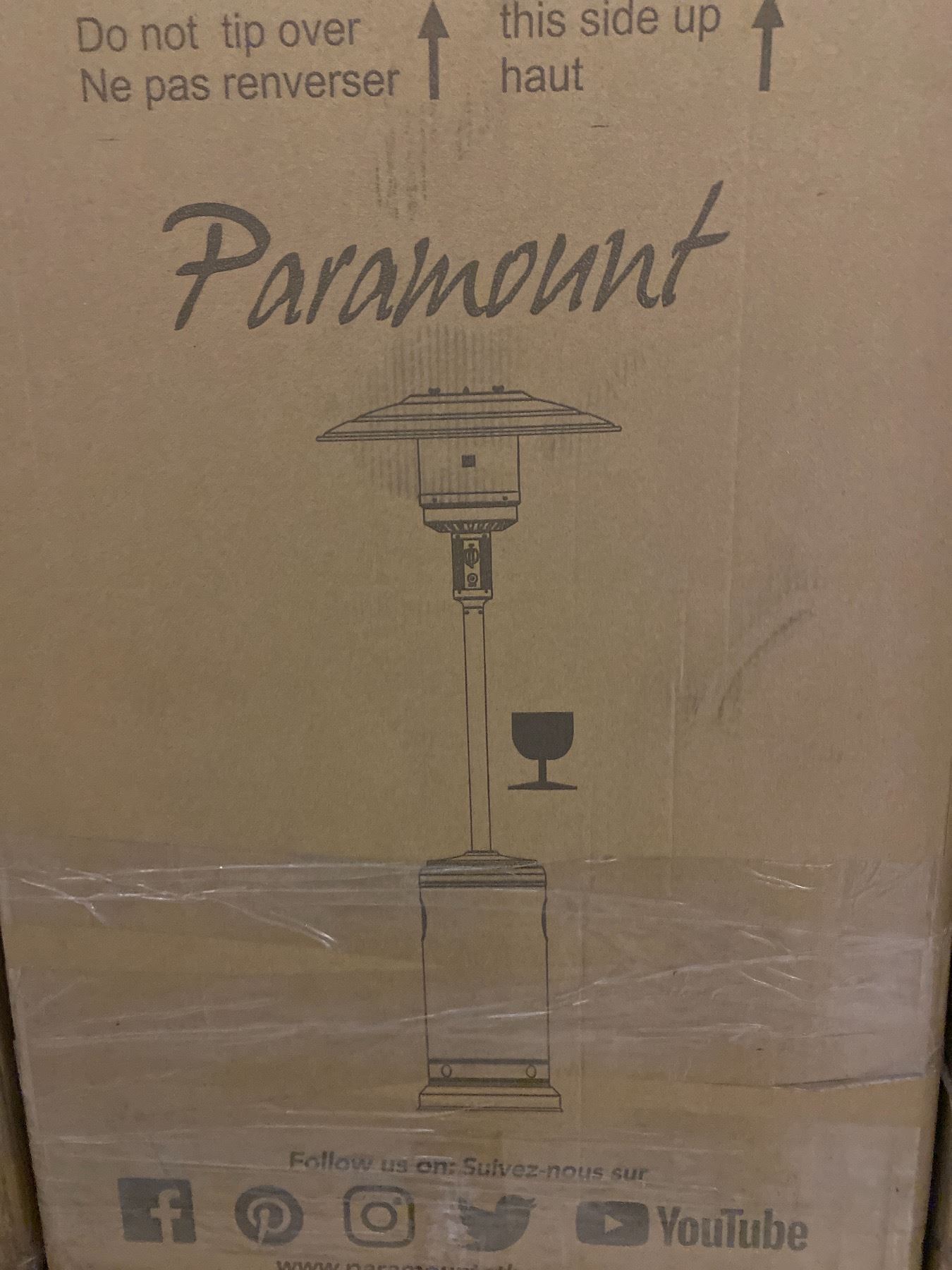 IN BOX PARAMOUNT OUTDOOR PATIO HEATER MOCHA & STAINLESS STEEL 18.11 X 18.11 X 30.9"