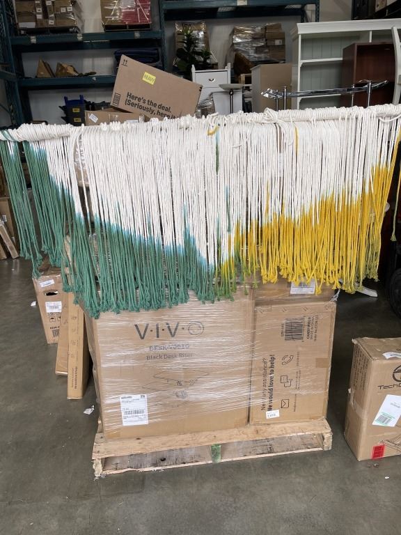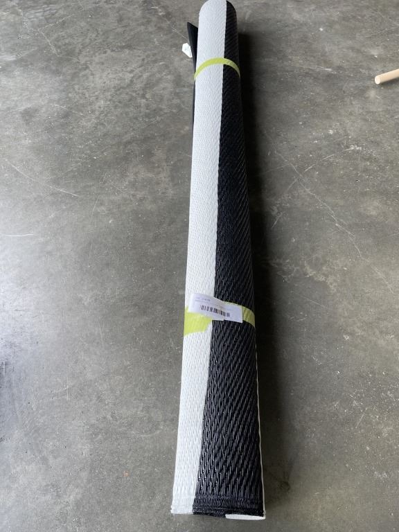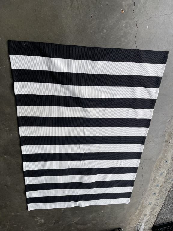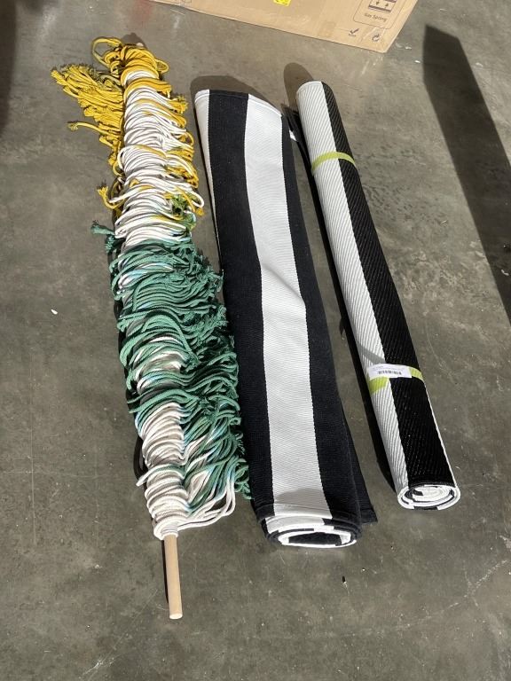 INDOOR AND OUTDOOR CARPETS, BLACK AND WHITE 4X6FT AND MACRAME HANGING