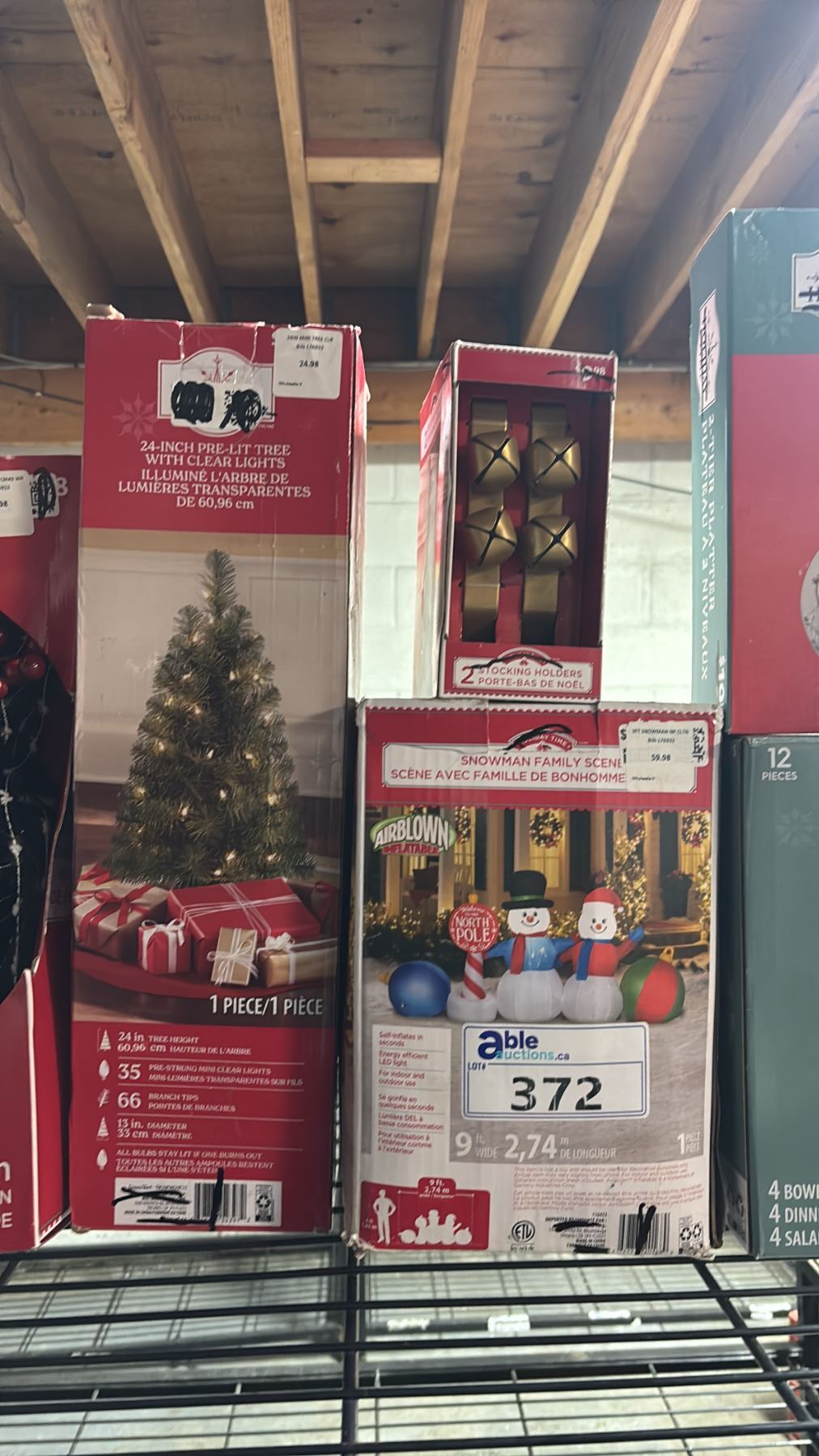 INFLATABLE SNOWMAN FAMILY SCENE, STOCKING HOLDERS, 20" WREATH, CHRISTMAS LIGHTS & DECORATIVE CHRISTMAS PLATES & MORE