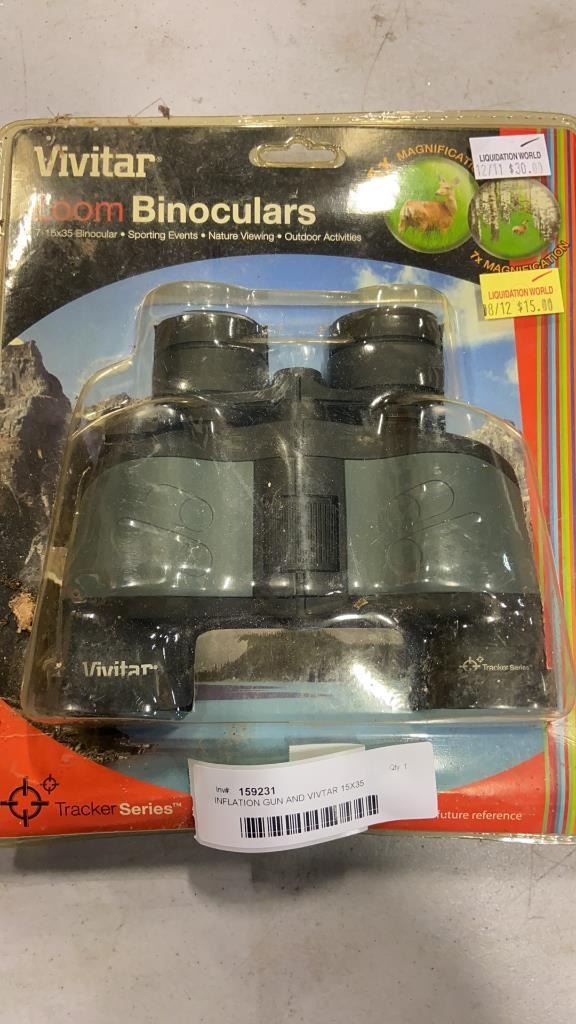 INFLATION GUN AND VIVTAR 15X35 BINOCULARS