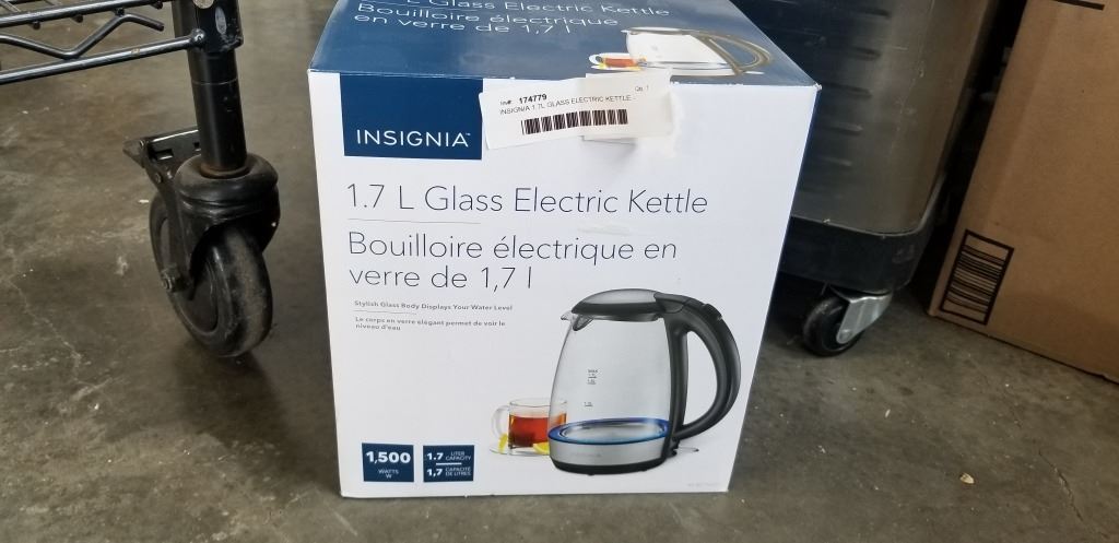 INSIGNIA 1.7L GLASS ELECTRIC KETTLE - TESTED WORKING, RETAIL $49