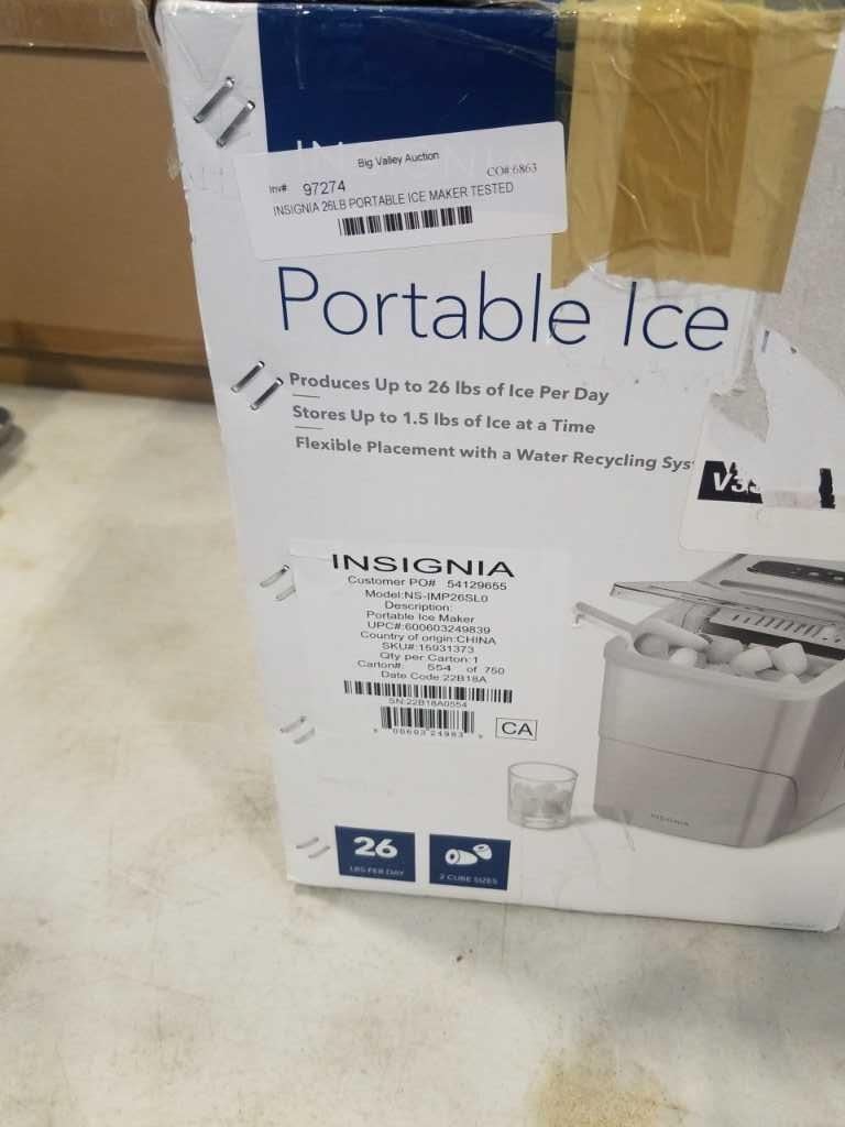 INSIGNIA 26LB PORTABLE ICE MAKER TESTED AND WORKING, RETAIL $199