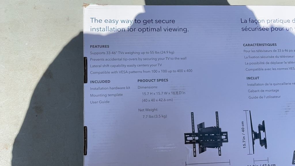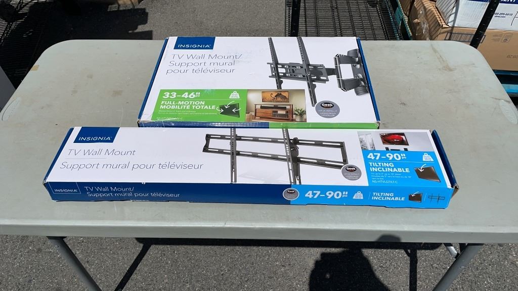 INSIGNIA 33" - 46" FULL MOTION TV MOUNT AND INSIGNIA 47"-90" TILTING WALL MOUNT - RETAIL $288