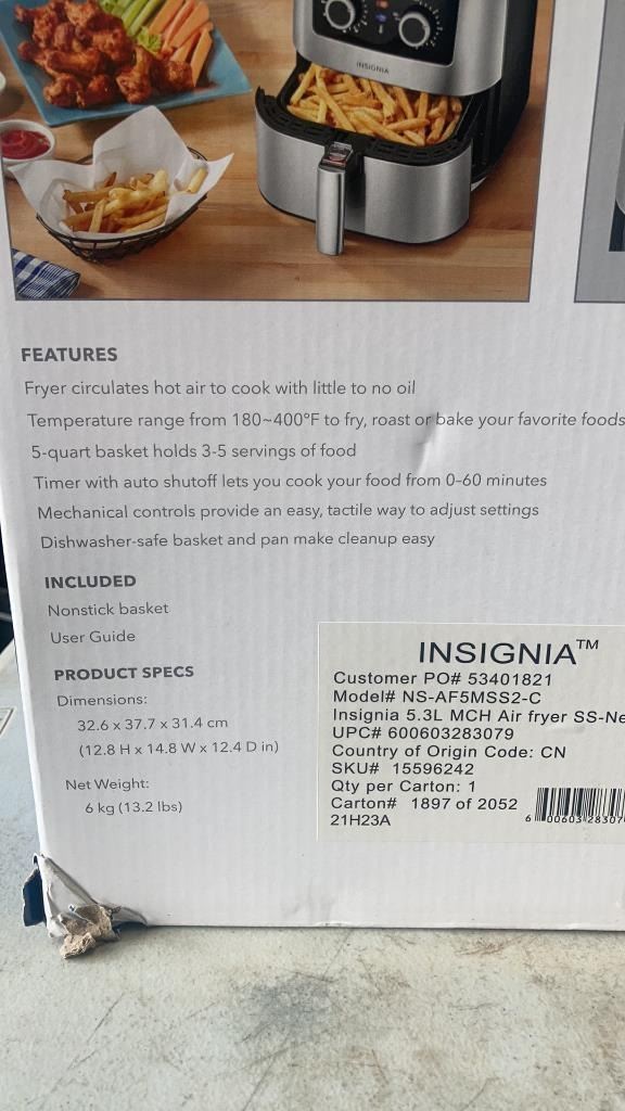 INSIGNIA 4.8L MECHANICAL CONTROL AIR FRYER TESTED AND WORKING, RETAIL $219