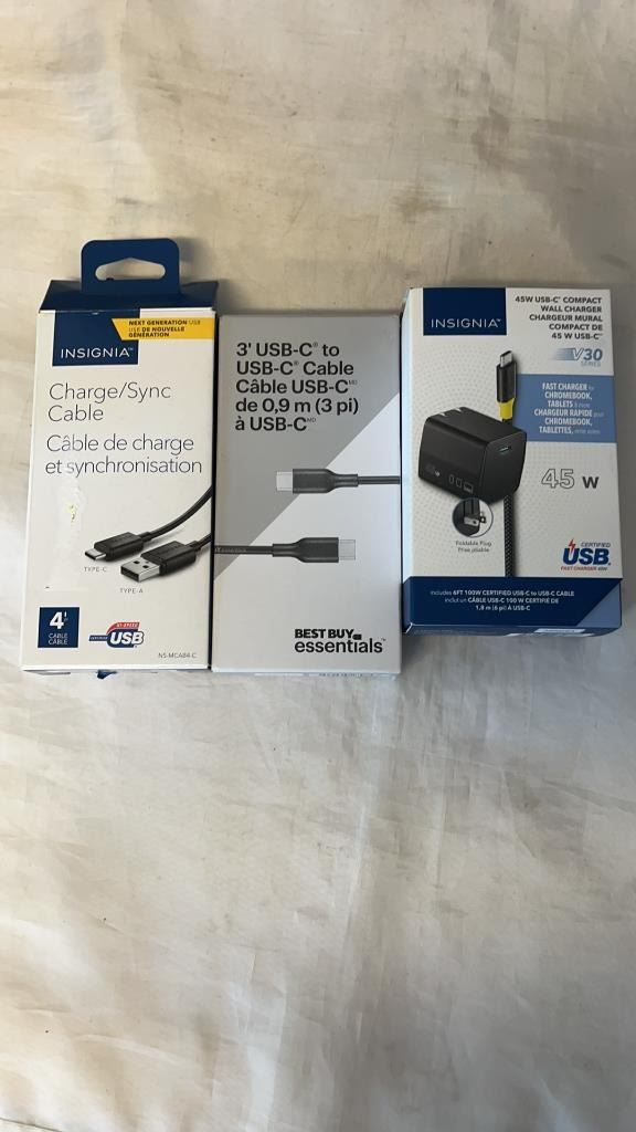 INSIGNIA 45W WALL CHARGER AND CHARGE CABLES