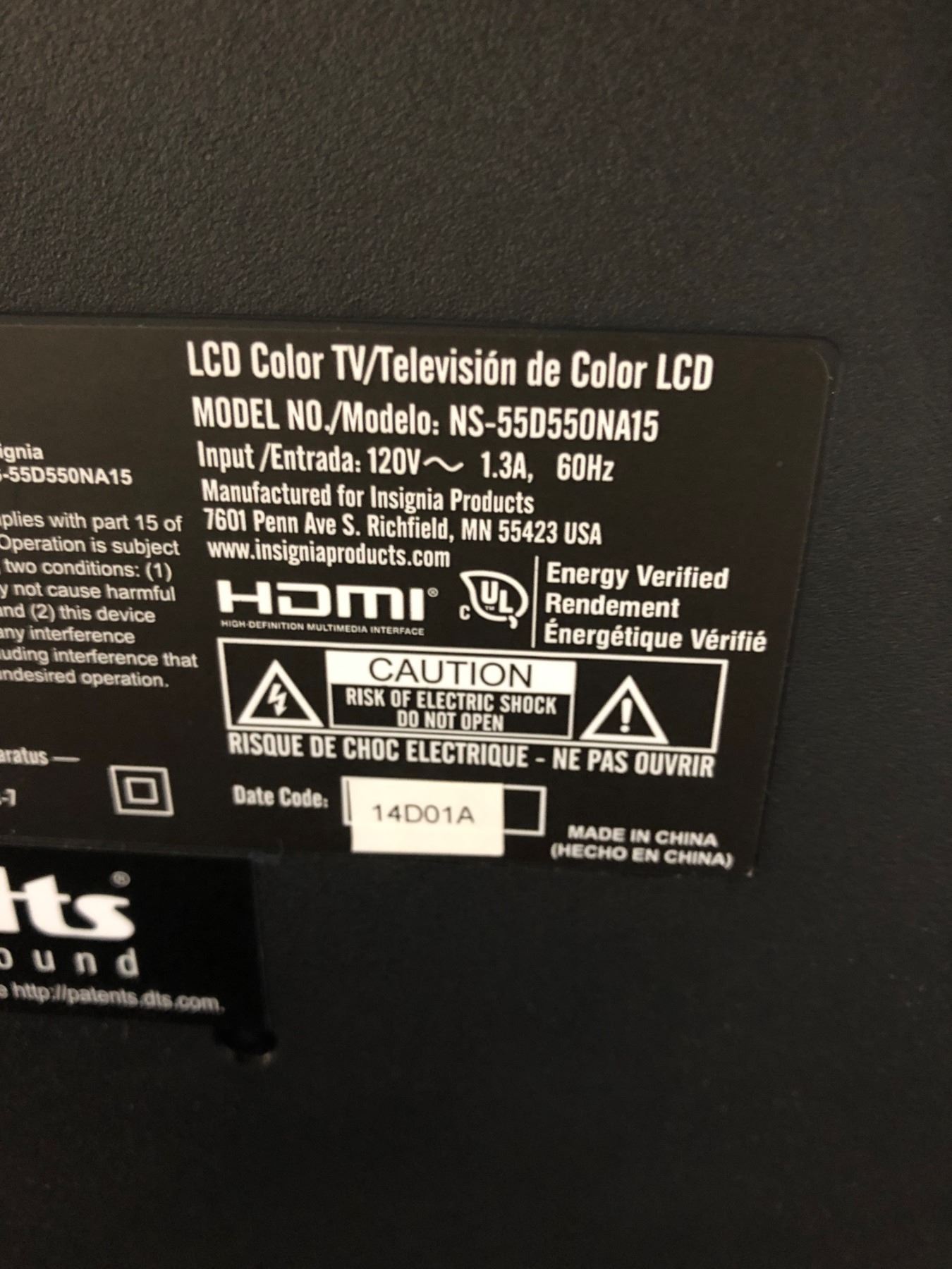 INSIGNIA 55" LCD TV MODEL NS-55D55ONA15, HAS REMOTE