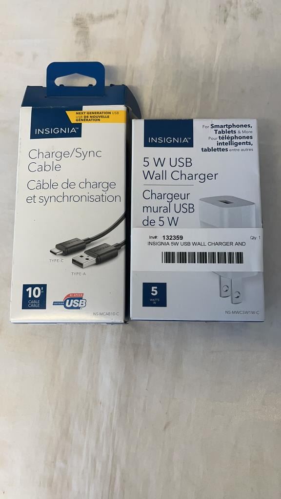 INSIGNIA 5W USB WALL CHARGER AND INSIGNIA CHARGE/ SYNC CABLE