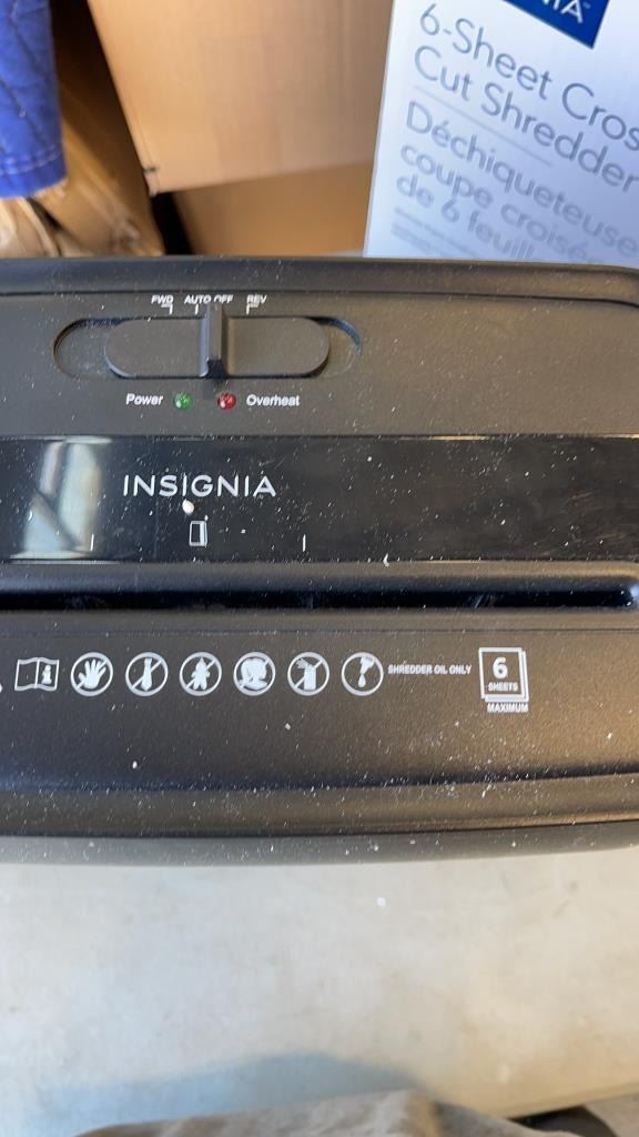 INSIGNIA 6 SHEET CROSSCUT SHREDDER TESTED AND WORKING - RETAIL $69