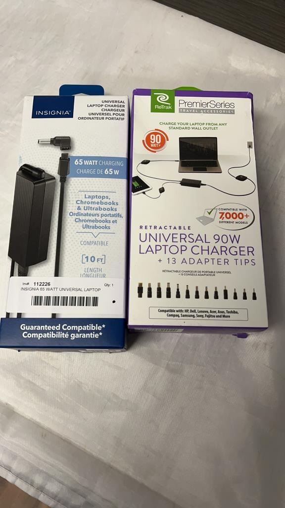 INSIGNIA 65 WATT UNIVERSAL LAPTOP CHARGER AND UNIVERSAL 90 WATT RETRACTABLE LAPTOP CHARGER