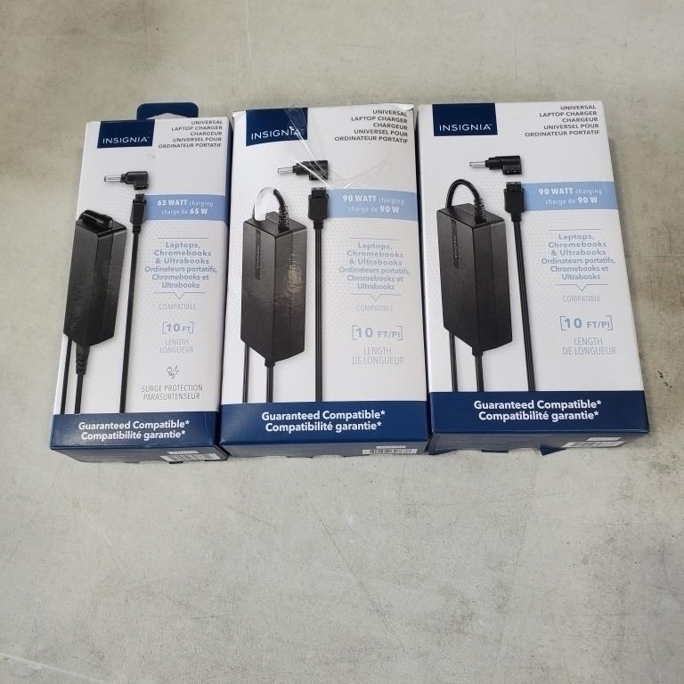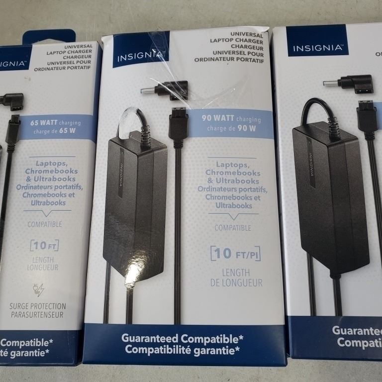 INSIGNIA 65W AND 2 90W UNIVERSAL LAPTOP CHARGERS