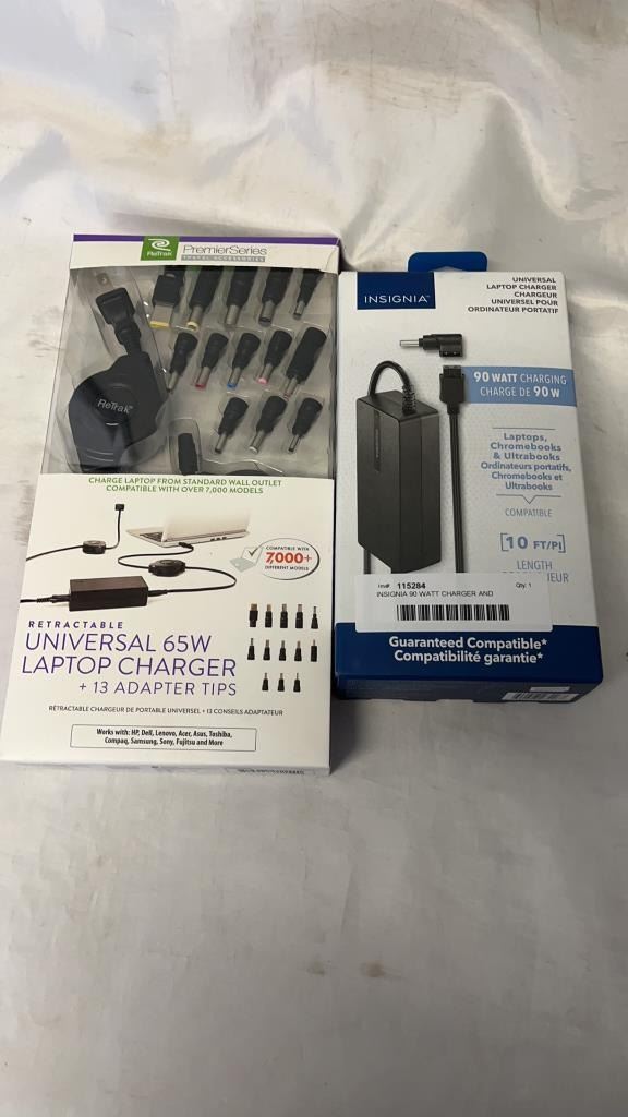 INSIGNIA 90 WATT CHARGER AND RETRACTABLE 65 WATT CHARGER