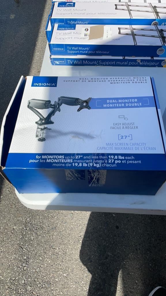 INSIGNIA DUAL MONITOR HYDRAULIC MOUNT OPEN BOX WITH NEW HARDWARE KIT