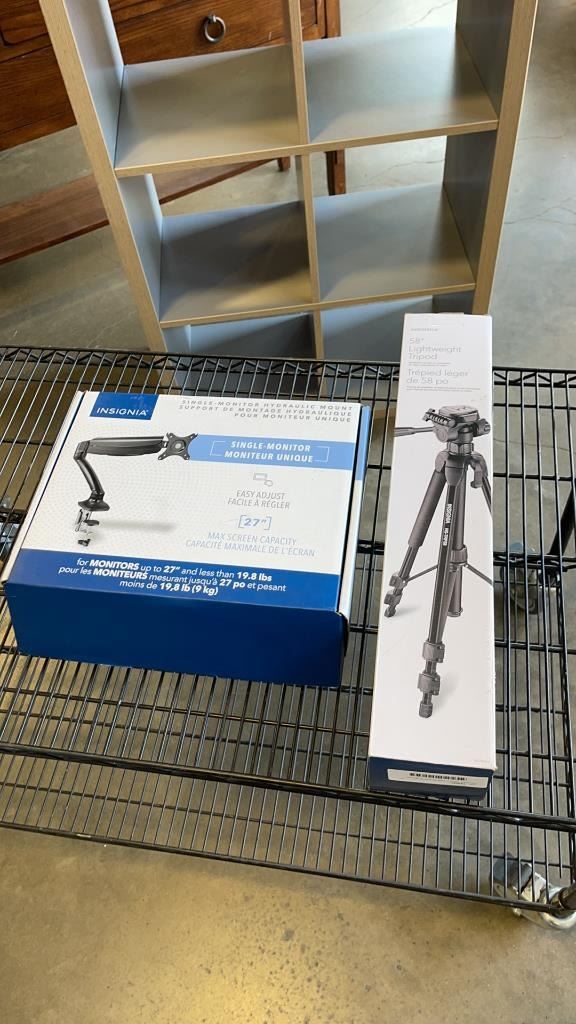 INSIGNIA SINGLE ARM MONITOR MOUNT AND 58" LIGHTWEIGHT TRIPOD
