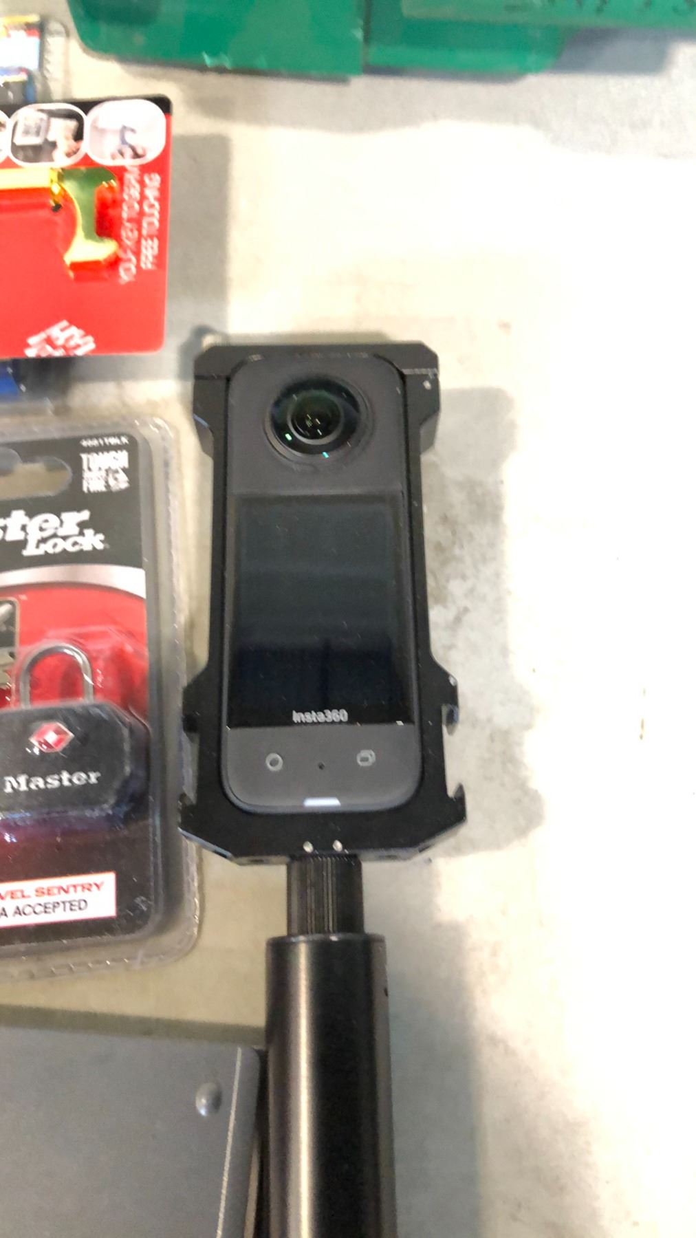 INSTA360 360 CAMERA NO CHARGER, CELLPHONE CASES, CRICUT MINI HEAT PRESS, BOSS WALLET, PADLOCK, CARABINER AND MORE