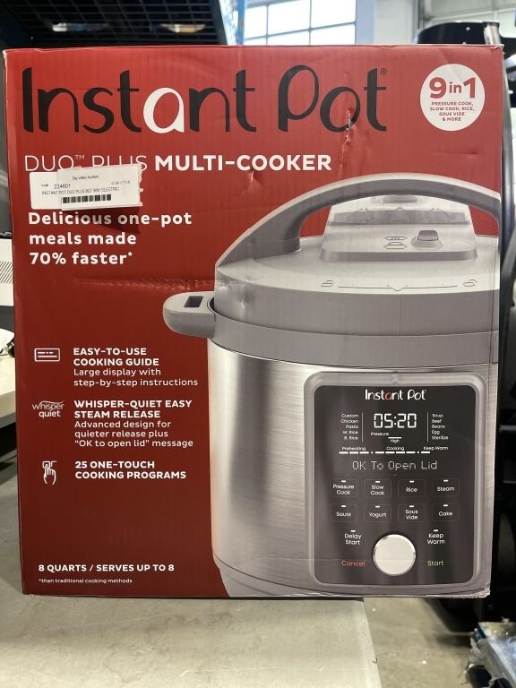 INSTANT POT DUO PLUS 8QT 9IN1 ELECTRIC PRESSURE COOKER - TESTED WORKING, RETAIL $179