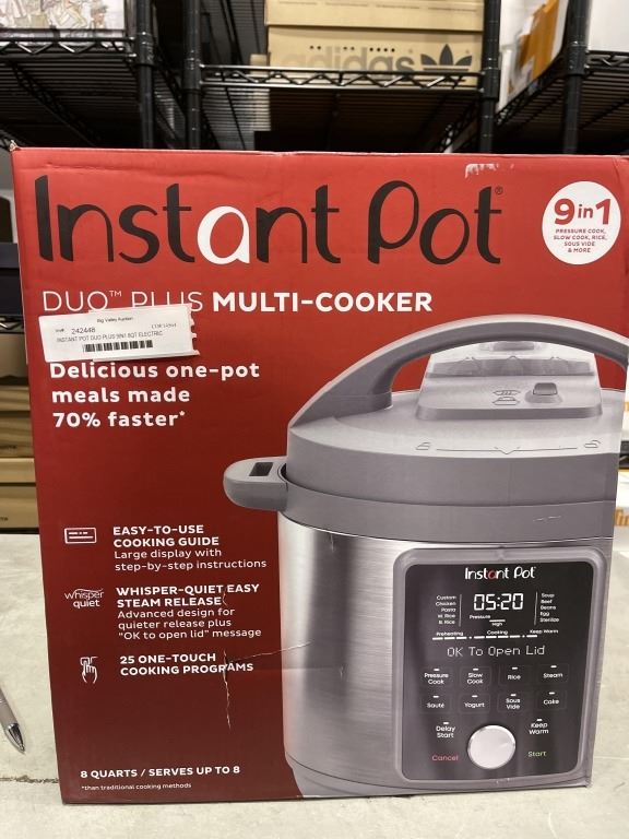 INSTANT POT DUO PLUS 9IN1 8QT ELECTRIC PRESSURE COOKER - TESTED WORKING, RETAIL $209