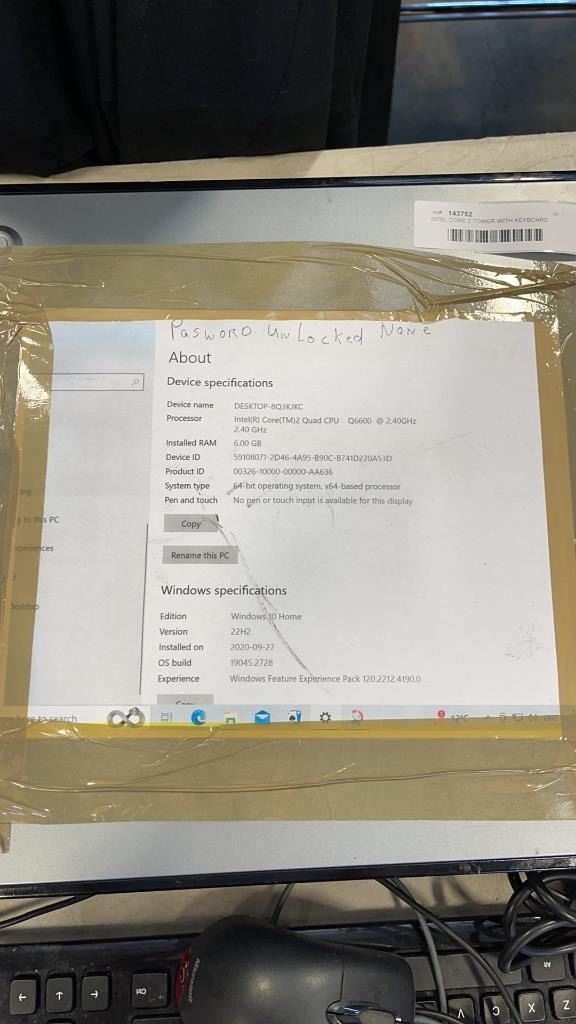 INTEL CORE 2 TOWER WITH KEYBOARD AND MOUSE PASSWORD UNLOCKED