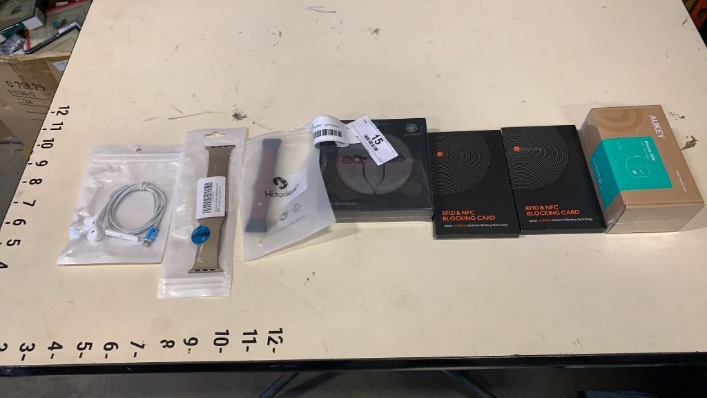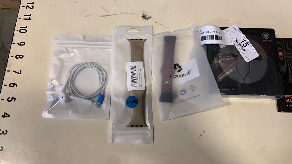 IPHONE WATCH BAND, LIGHTNING HEADPHONES, EARBUDS USB C CHARGER AND RFID BLOCKING CARD