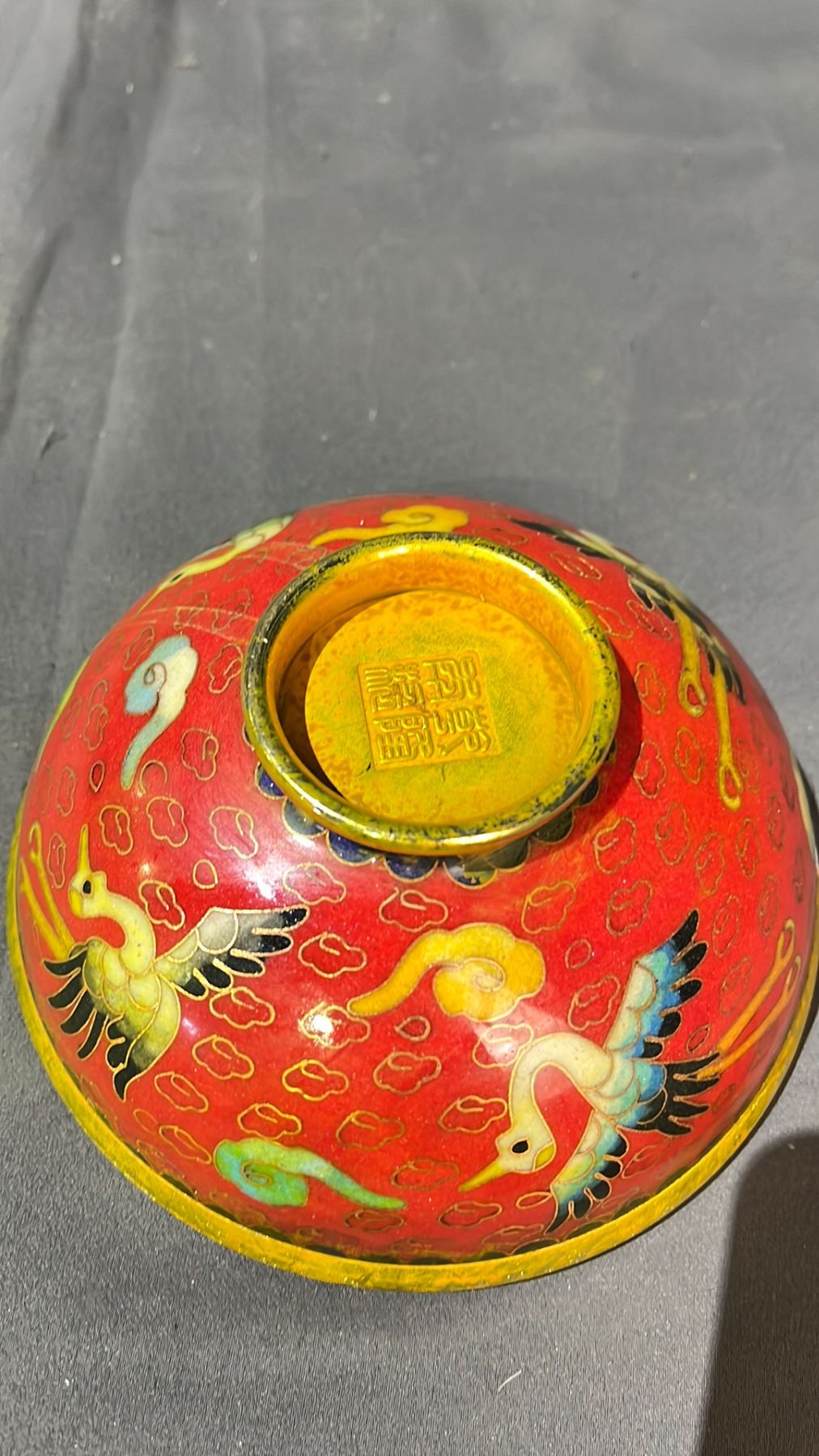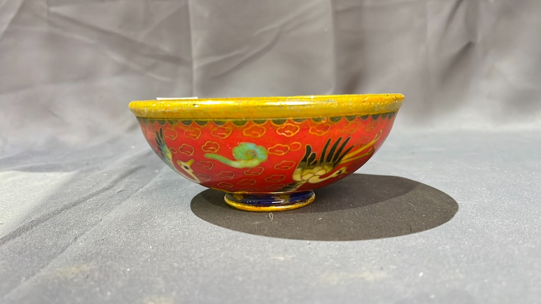 IRON RED GROUND COPPER CLOISONNE BOWL