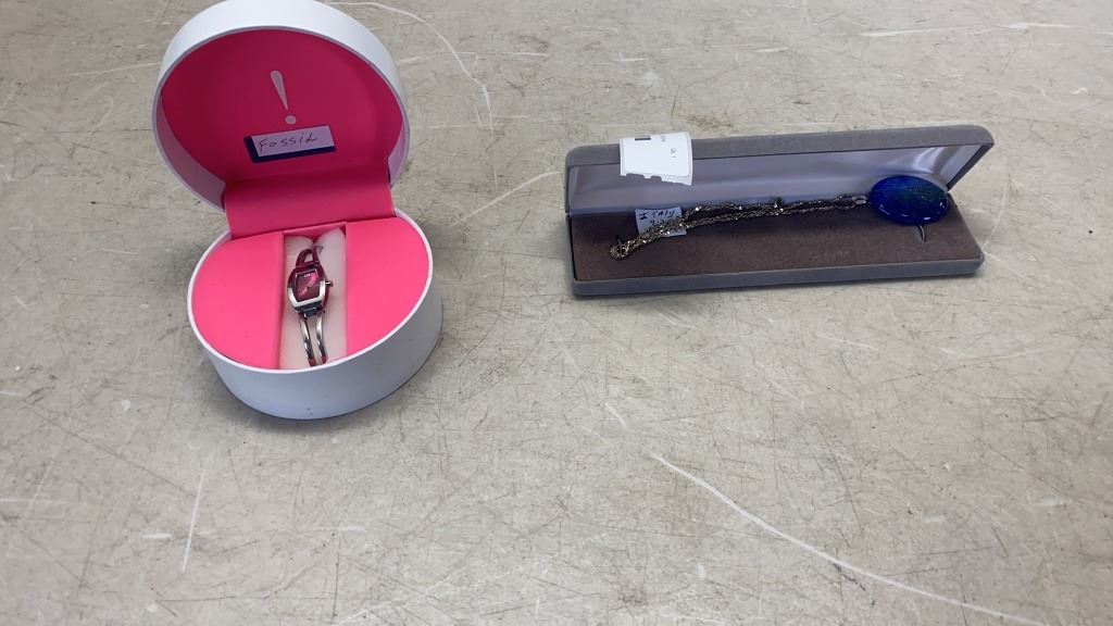 ITALIAN .925 SILVER NECKLACE WITH PENDANT AND LADIES FOSSIL WATCH