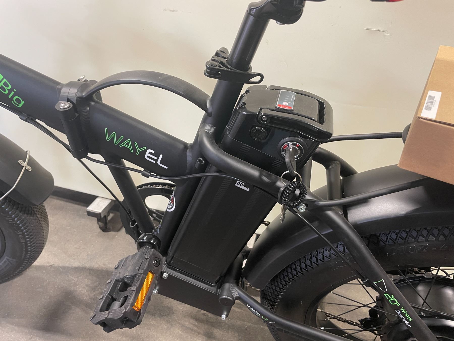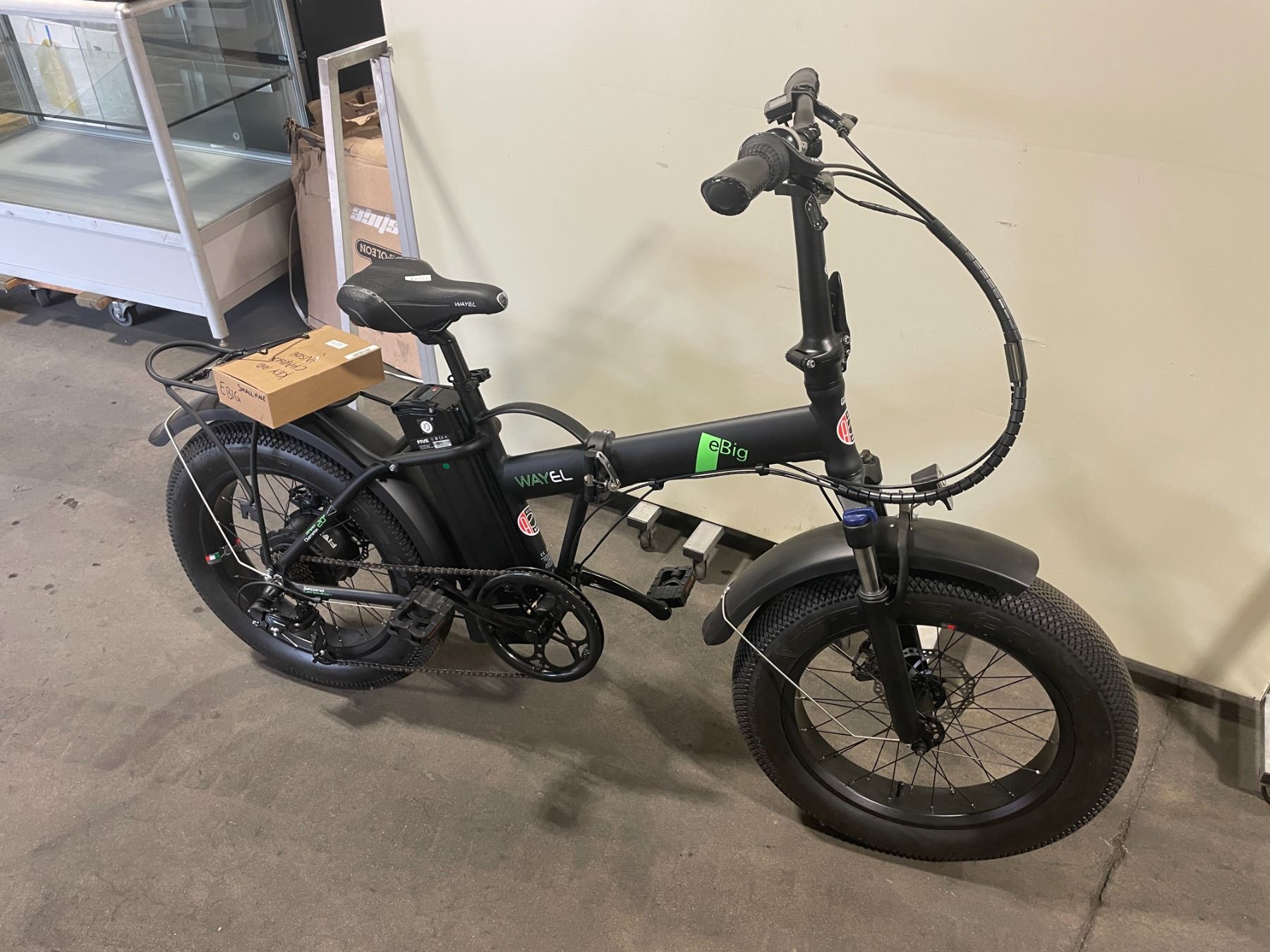 ITALWIN EBIG FOLDABLE FRONT SUSPENSION MOUNTAIN E-BIKE. 500W/1000W MOTOR, 32 KM/H MAX SPEED, 36 VOLT BATTERY, DISPLAY MONITOR, 4" X 20" TIRES, UP TO 75 KM RANGE, MECHANICAL DISC BRAKES, 16.5" X 22.8" FRAME, LED LIGHTING, 26 KG WEIGHT, PEDAL ASSISTED ELECTRIC, HAS LUGGAGE RACK, KEYS & CHARGER (UNASSEMBLED/IN BOX)