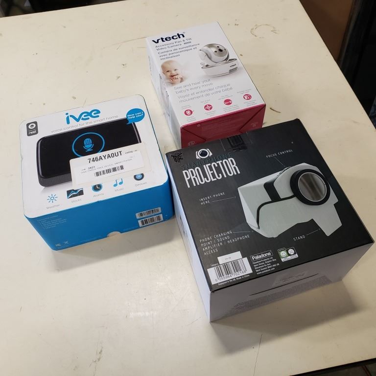 IVEE HANDS FREE DEVICE, SMART PHOEN PROJECTOR AND VTECH PAN AND TILT CAMERA