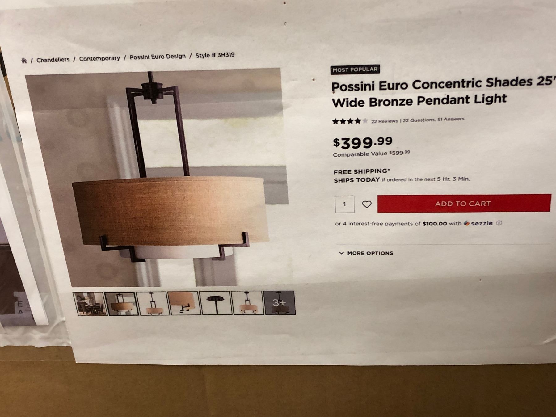 "IVY+Bean Movie" Bean's house Rossini Europe Concentric shades 25 inch wide bronze pendent light ( retails $400)