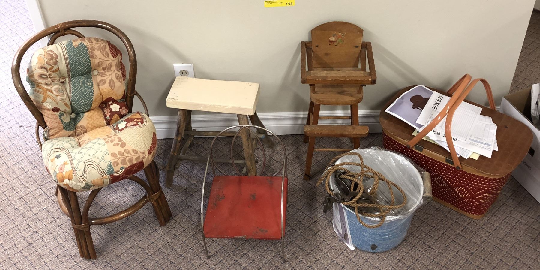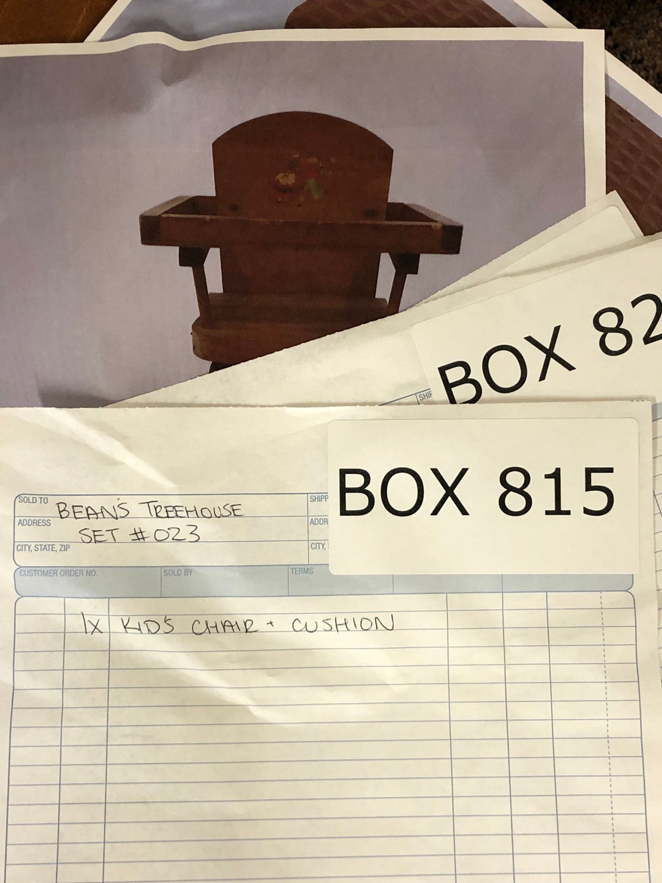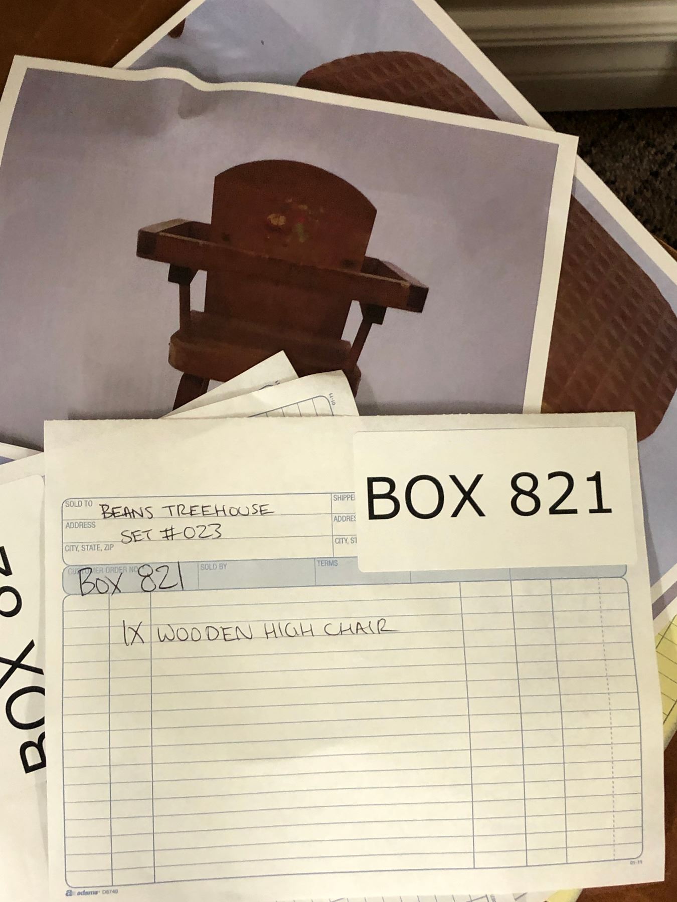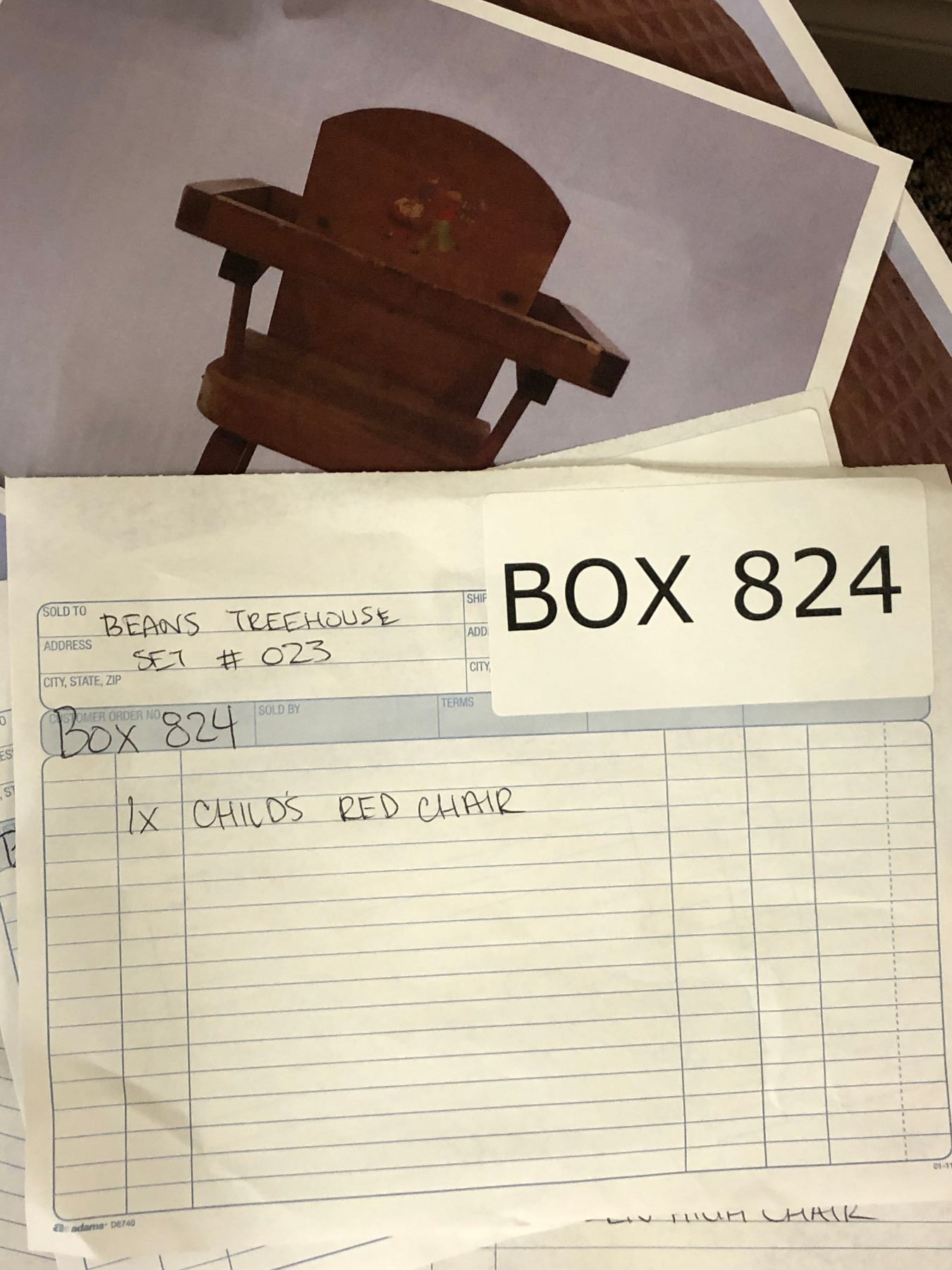 "IVY+Bean Movie" Beans tree house contents- includes wooden high chair/ kids chair with cushion/ child's metal chair etc.