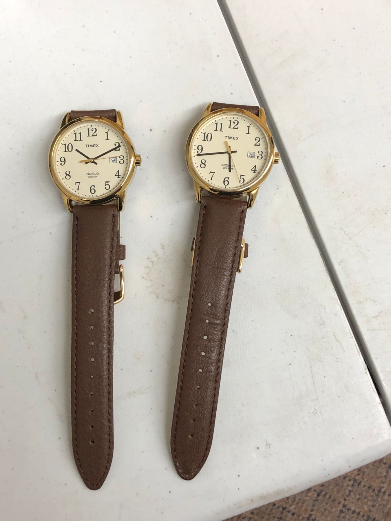 "IVY+Bean Movie" Set of 2 Timex Indiglo WR30M men's leather strap wristwatches