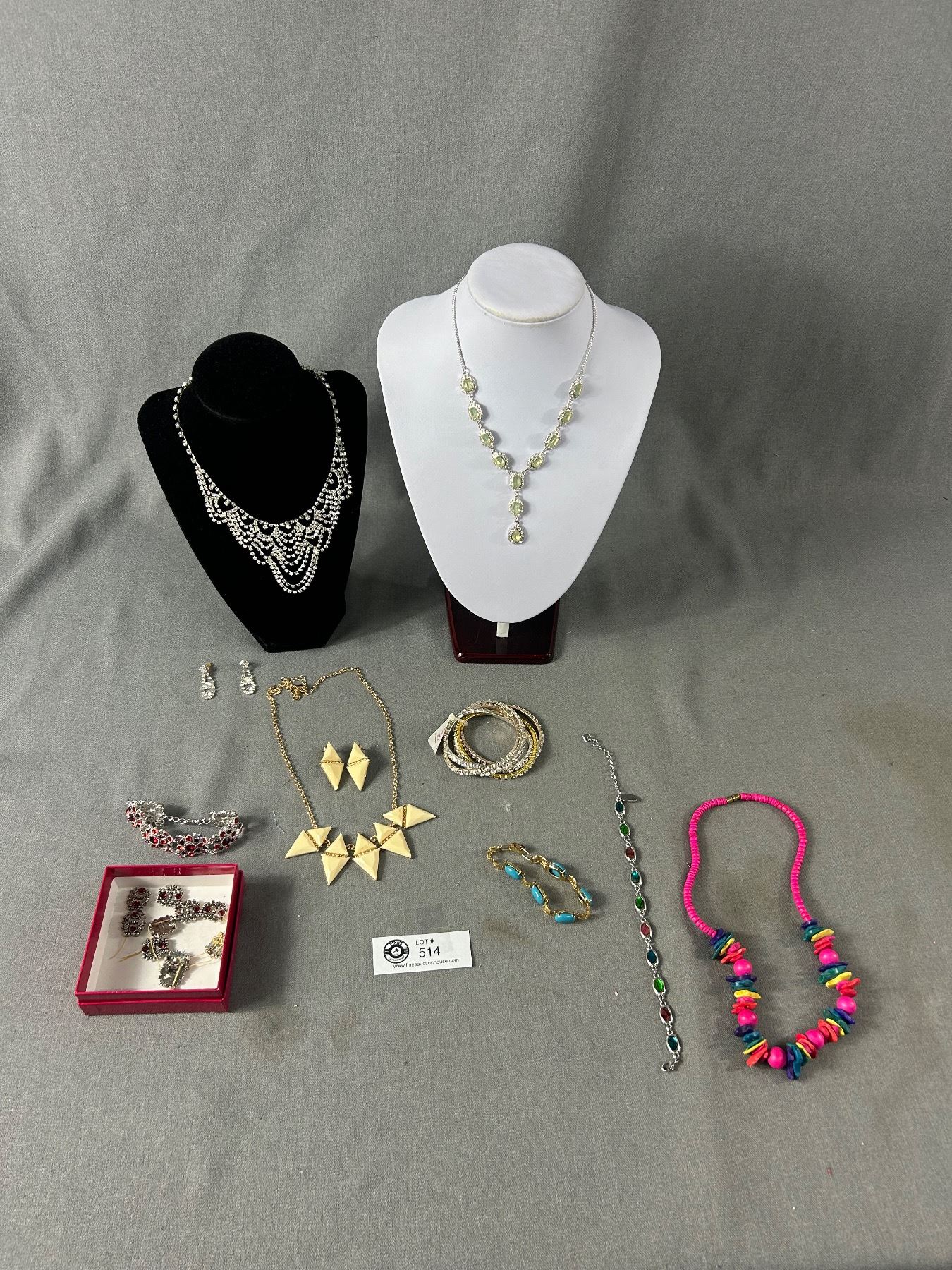 Icing Rhinestone Necklaces and Bracelet, Red Rhinestone Bracelets (1 as Found) & More