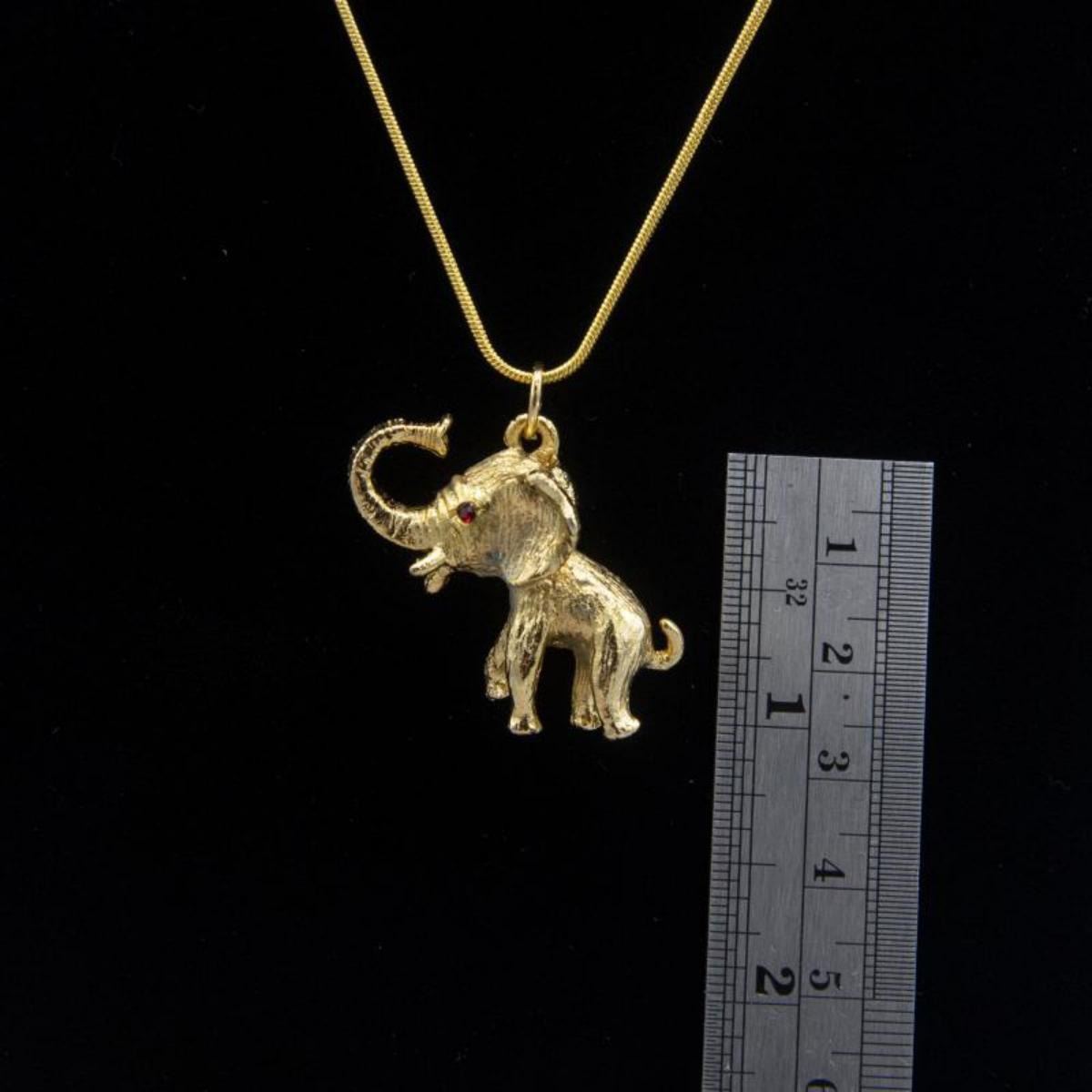 Impressive 14 Kt G.P. Elephant Pendant.This Beautiful Elephant Swingd From an 18 " G.P. Chain. The Total Gram Weight Is Approx 23.6 Tg. Many People Believe The Symbolic Elephant Meaning Deals Primarily With Strength, Honor, Stability and Tenacity, Among Other Attributes. Sucyh a Lovely Pendant.