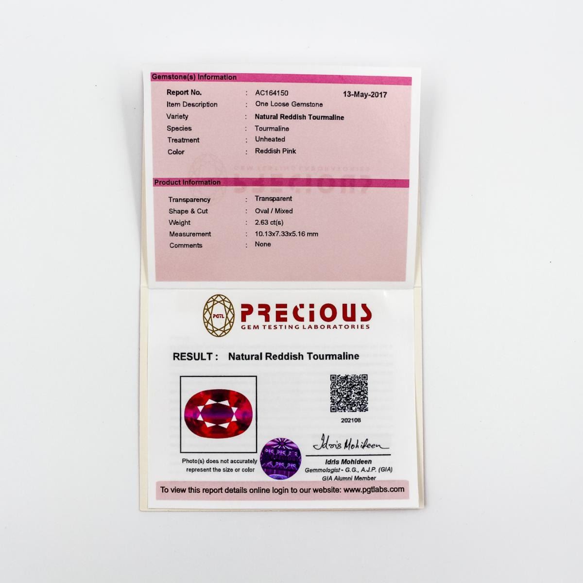 Impressive 2.63 Ct Certified Natural Red Tourmaline.Fine Oval cut measuring 10.13 x 7.33 x 5.16 mm. This tormailne displays a strong even red saturation with a vivid sparkle and bright hue/ VVS-VS1.This Rare Natural Unheated / Untreated Beauty Is Ready To Mount