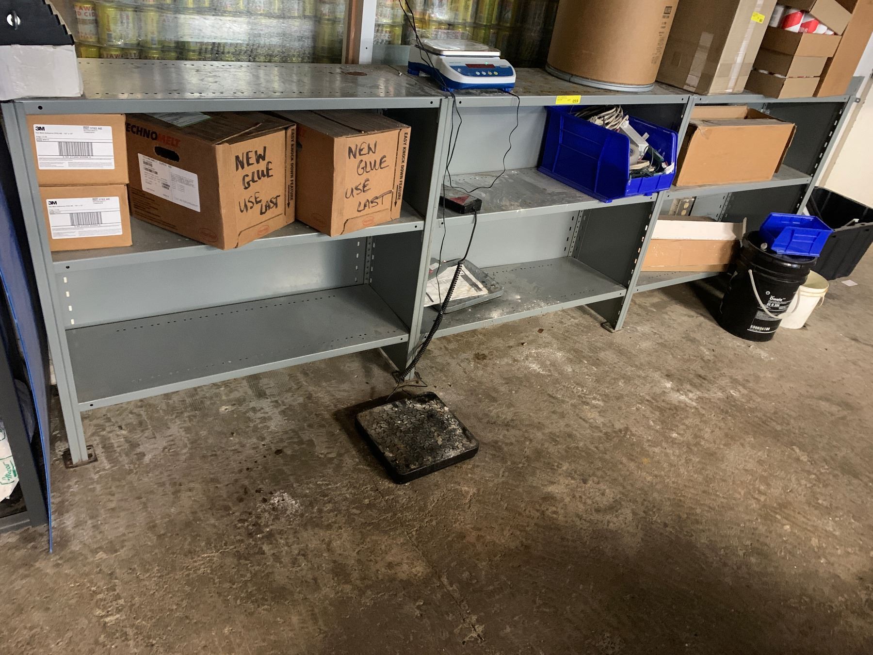 Industrial heavy-duty metal shelving racks - entire rack approx. 10 1/2ft wide x 15in wide x 40 1/2in height (CONTENTS NOT INCLUDED)