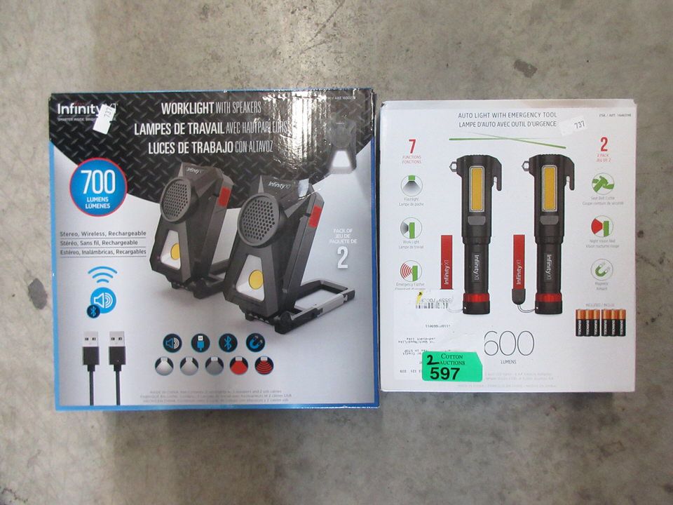 500 Lumens worklight with speakers & auto light with emergency tool. Customer returns.