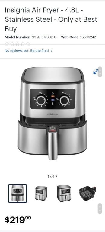 Insignia Air Fryer - 4.8L - Stainless Steel - Working, Retail $219.99
